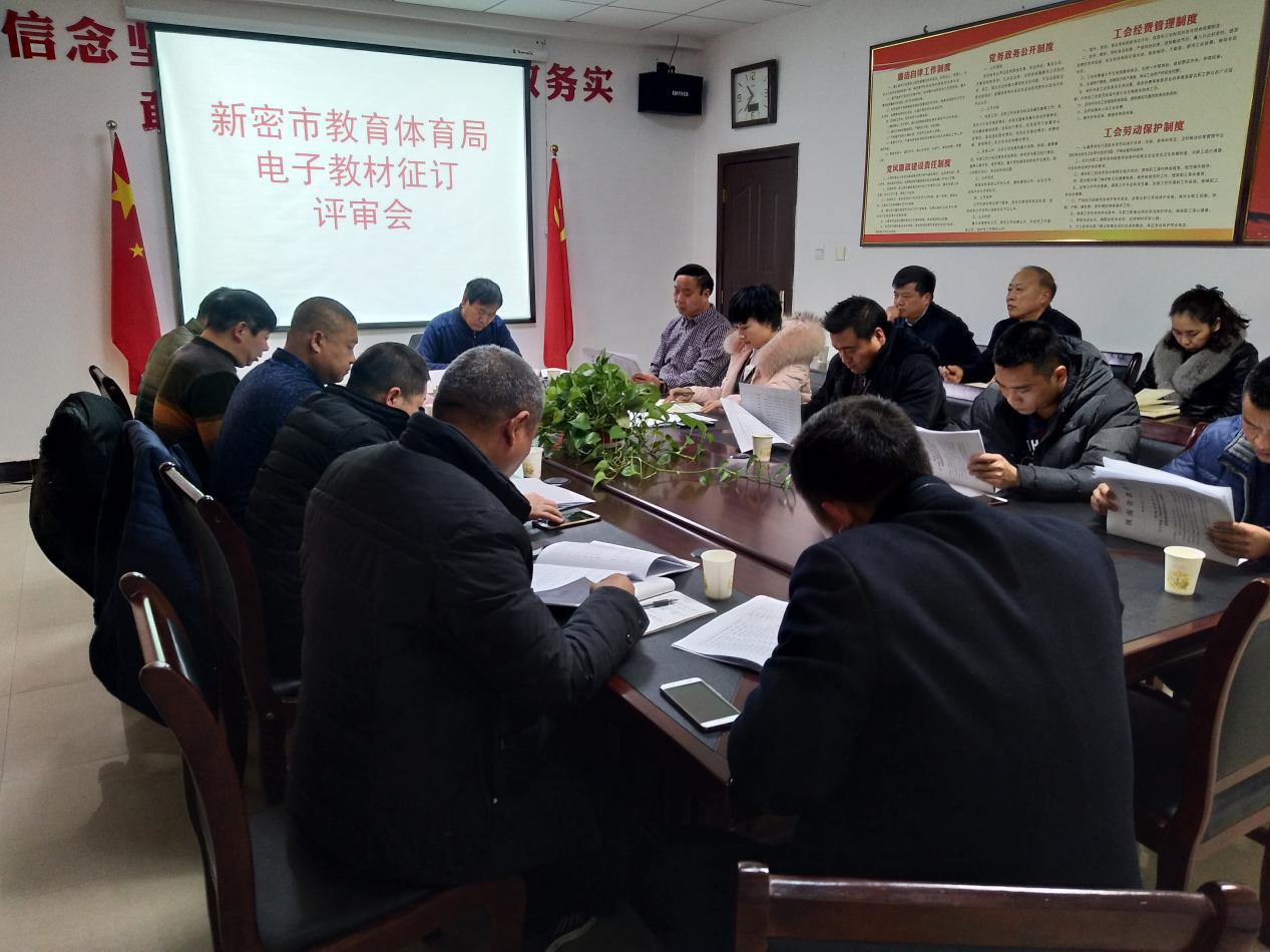 新密市教育體育局電子教材征訂評(píng)審會(huì)在新密市店舉行