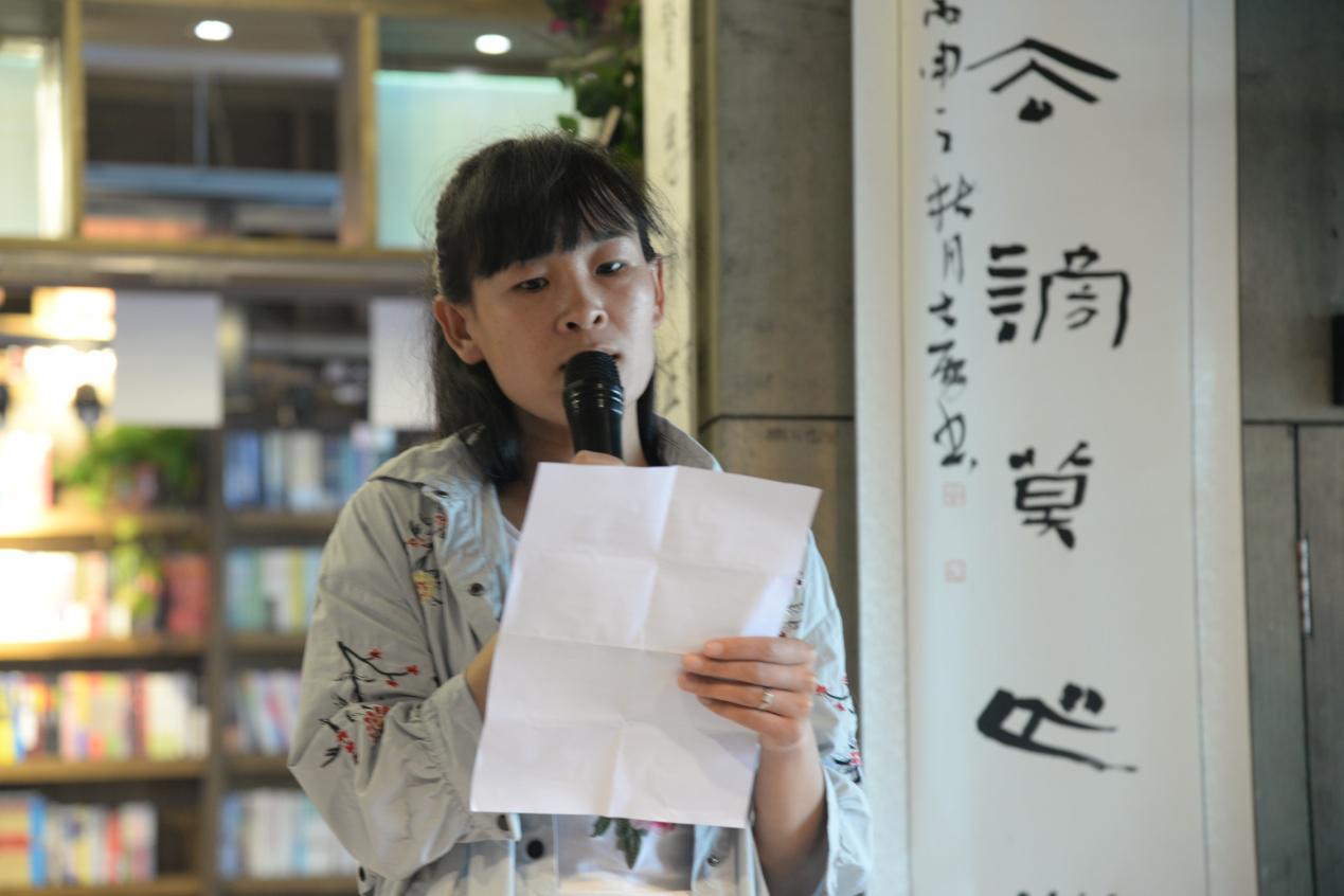 大學(xué)生趙沛茵朗讀了《平凡的世界》的選篇,同時(shí)也為大家分享了自己的讀后感,她說(shuō):“作家路遙的這本百萬(wàn)字的小說(shuō),是一本激勵(lì)千萬(wàn)青年人的不朽經(jīng)典。小說(shuō)中的男主人公孫少安、孫少平能夠把苦難轉(zhuǎn)化為一種前行的精神動(dòng)力,也時(shí)刻激勵(lì)著自己,不斷奮力前行。”趙晨霞老師朗讀了徐志摩膾炙人口的《再別康橋》,趙老師通過(guò)自己的朗讀,充分展現(xiàn)了作者徐志摩熱烈、真摯、輕柔、細(xì)膩又略帶飄逸的浪漫主義思想。