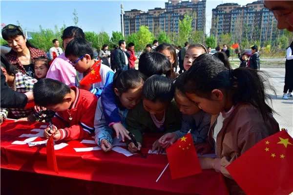 開幕儀式尾聲廣大讀者和學(xué)生紛紛在萬米長卷上簽下自己的名字和喜愛的圖書,以此來表達(dá)對(duì)圖書的熱愛。