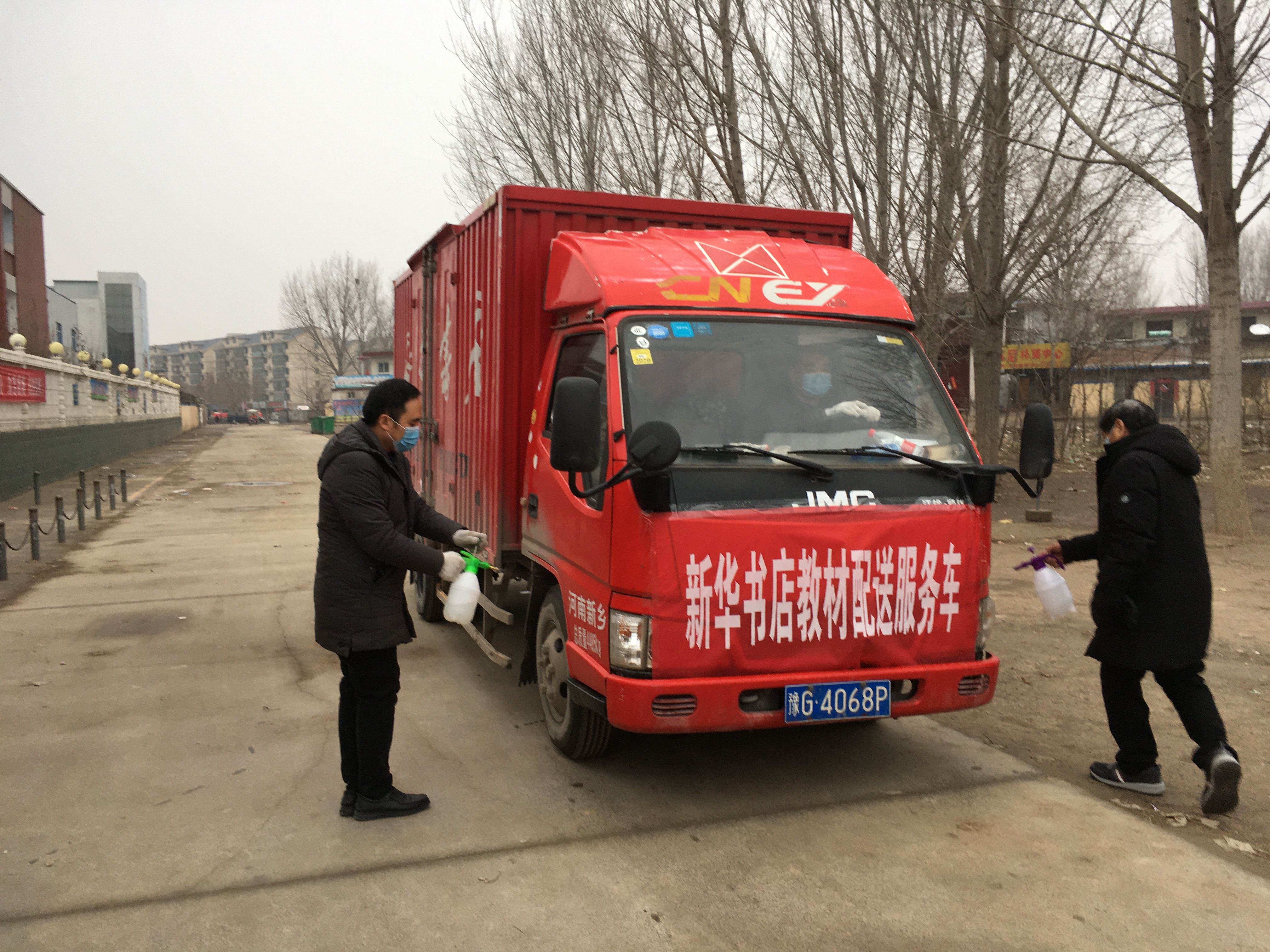 在教材發(fā)放工作中,新鄉(xiāng)市店一是拉長(zhǎng)教材發(fā)放時(shí)間段,盡可能減少不必要的人員聚集,將以往發(fā)放時(shí)間由5天調(diào)整至14天以上,控制每天發(fā)放學(xué)校的數(shù)量(10所左右)和參與取書的老師人數(shù)(每所學(xué)校除司機(jī)外,只能到2人);二是備足防控物資,加強(qiáng)進(jìn)出人員及車輛管理,落實(shí)消毒等防控措施,做到每人必測(cè)體溫、每車必消毒,設(shè)置進(jìn)口與出口消毒點(diǎn),配備酒精、流動(dòng)水源等設(shè)施,由專人負(fù)責(zé)消毒,