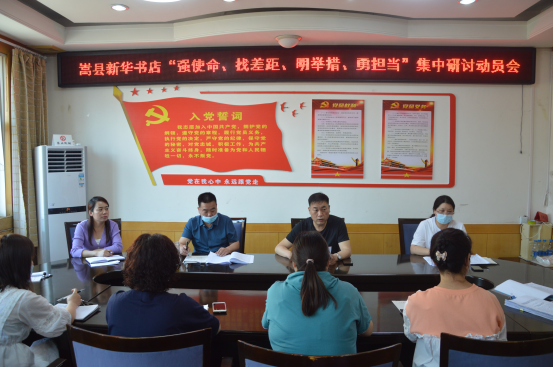按照中共嵩縣縣委“強(qiáng)使命、找差距、明舉措、勇?lián)?dāng)”集中學(xué)習(xí)研討活動的安排部署,5月26日上午,嵩縣新華書店全體職工在黨員活動室,召開“強(qiáng)使命、找差距、明舉措、勇?lián)?dāng)”集中學(xué)習(xí)研討動員會,全體干部職工參加會議。