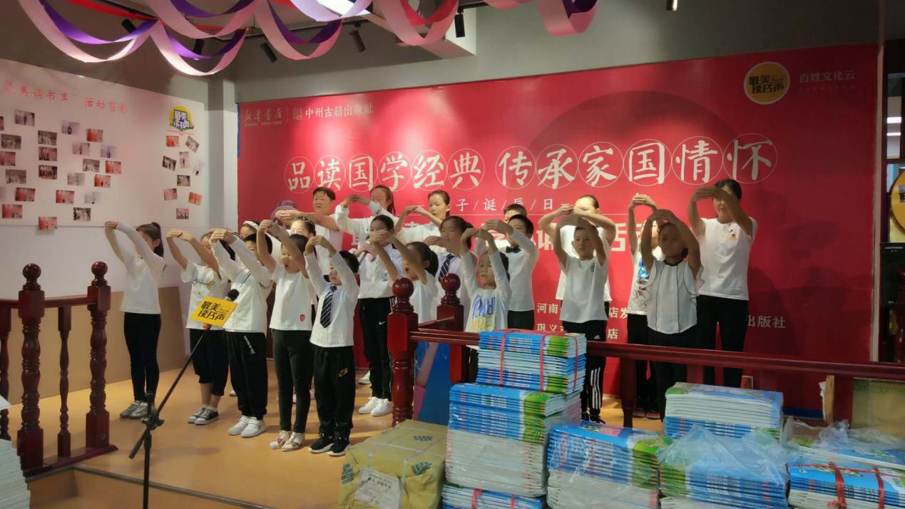 為進(jìn)一步弘揚(yáng)中華民族優(yōu)秀傳統(tǒng)文化,用實(shí)際行動(dòng)助力文化扶貧工作,不斷推動(dòng)鞏義市全民閱讀活動(dòng)持續(xù)開展,9月26日,鞏義市新華書店以“品讀國(guó)學(xué)經(jīng)典,傳承家國(guó)情懷”為主題,結(jié)合儒家學(xué)派創(chuàng)始人孔子誕辰文化元素,舉辦了“最美讀書聲”薦書、誦讀活動(dòng);顒(dòng)以網(wǎng)絡(luò)直播形式在該店舉行,廣大讀者、小學(xué)生40余人積極參加了此次活動(dòng),線上、線下累計(jì)觀看人數(shù)近8000人。