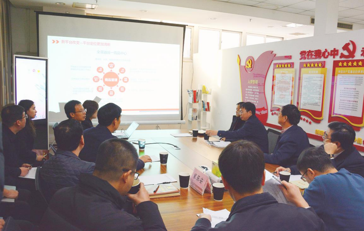 12月15日下午,集團(tuán)公司黨委書記、董事長(zhǎng)郭元軍,黨委副書記、副董事長(zhǎng)王大瑋,中原股份副總經(jīng)理王廣照和相關(guān)部室負(fù)責(zé)人到發(fā)行集團(tuán)調(diào)研云書網(wǎng)、百姓文化云平臺(tái)升級(jí)工作,并召集座談會(huì)聽取工作匯報(bào)。中原股份副總經(jīng)理、發(fā)行集團(tuán)總經(jīng)理宋保安,發(fā)行集團(tuán)電商總監(jiān)任振茂、工會(huì)主席高俊國、副總經(jīng)理盧長(zhǎng)春陪同調(diào)研。