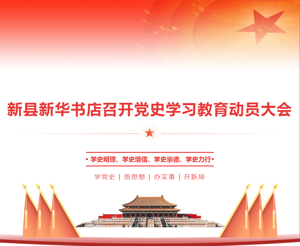 為深入學習貫徹習近平總書記在黨史學習教育動員大會上的重要講話精神,落實省、市、縣委和集團黨委動員大會部署,3月25日上午,新縣新華書店組織全體黨員召開了黨史學習教育動員大會。