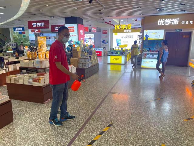 為做好新冠肺炎疫情防控工作,給廣大讀者創(chuàng)造一個安全健康的購書環(huán)境,幾乎每一家書店都對店門口、咖啡座、辦公室等重點公共區(qū)域進行了消毒。同時還會不定時地對書架、收銀臺、查閱臺、樓梯扶手等讀者經(jīng)常接觸的公共服務設施進行消毒,確保環(huán)境干凈整潔。