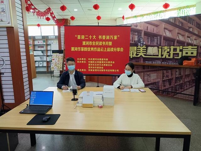 在第27個(gè)世界讀書(shū)日來(lái)臨之際,由市委宣傳部主辦,民盟漯河市委、市文聯(lián)、市作家協(xié)會(huì)協(xié)辦,市新華書(shū)店承辦的“喜迎二十大 書(shū)香潤(rùn)萬(wàn)家”漯河市全民讀書(shū)月活動(dòng)暨漯河作家群優(yōu)秀作品云上品讀分享會(huì)在市新華書(shū)店抖音官方平臺(tái)舉行。