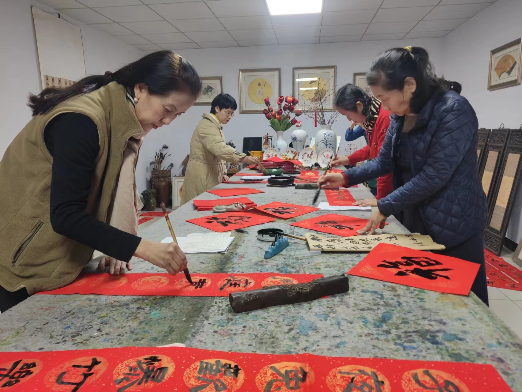 河南省各級(jí)新華書(shū)店聯(lián)系當(dāng)?shù)匚穆?lián)、書(shū)法家協(xié)會(huì)等群團(tuán)組織,邀請(qǐng)書(shū)法家、書(shū)法愛(ài)好者等在門店或者城市廣場(chǎng)、街道社區(qū)等人員密集的地方,開(kāi)展“名家楹聯(lián)春·書(shū)墨香送!惫鎸懰痛郝(lián)活動(dòng)。除了公益寫送春聯(lián)活動(dòng)之外,還特別邀請(qǐng)傳統(tǒng)民俗藝人現(xiàn)場(chǎng)展演木版年畫、捏面人制作、翻紙花制作、草編工藝品等非遺文化工藝。