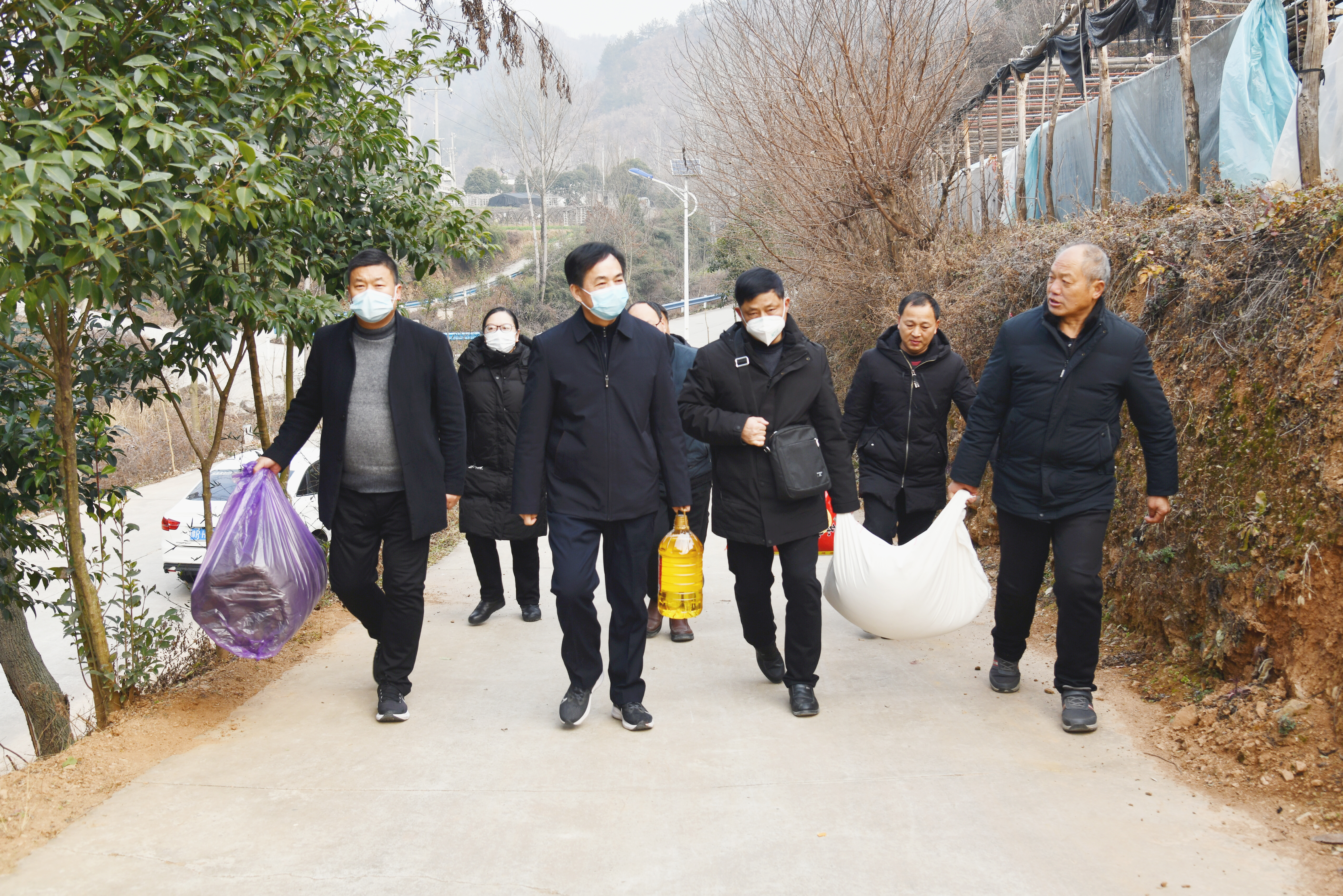 西峽縣竹園村是南陽市新華書店結(jié)對幫扶的省級貧困村。歷經(jīng)近十年的扶貧攻堅,如期實現(xiàn)整村脫貧摘帽,并榮獲市級文明村鎮(zhèn)、國家級森林村等榮譽稱號,如今又跨入了鄉(xiāng)村振興的新賽道。此次慰問書店購置了米、面、油、棉被等豐盛年貨,對已脫貧的24戶村民進行新年慰問,又捐助48噸水泥用于修繕村支部辦公用房。