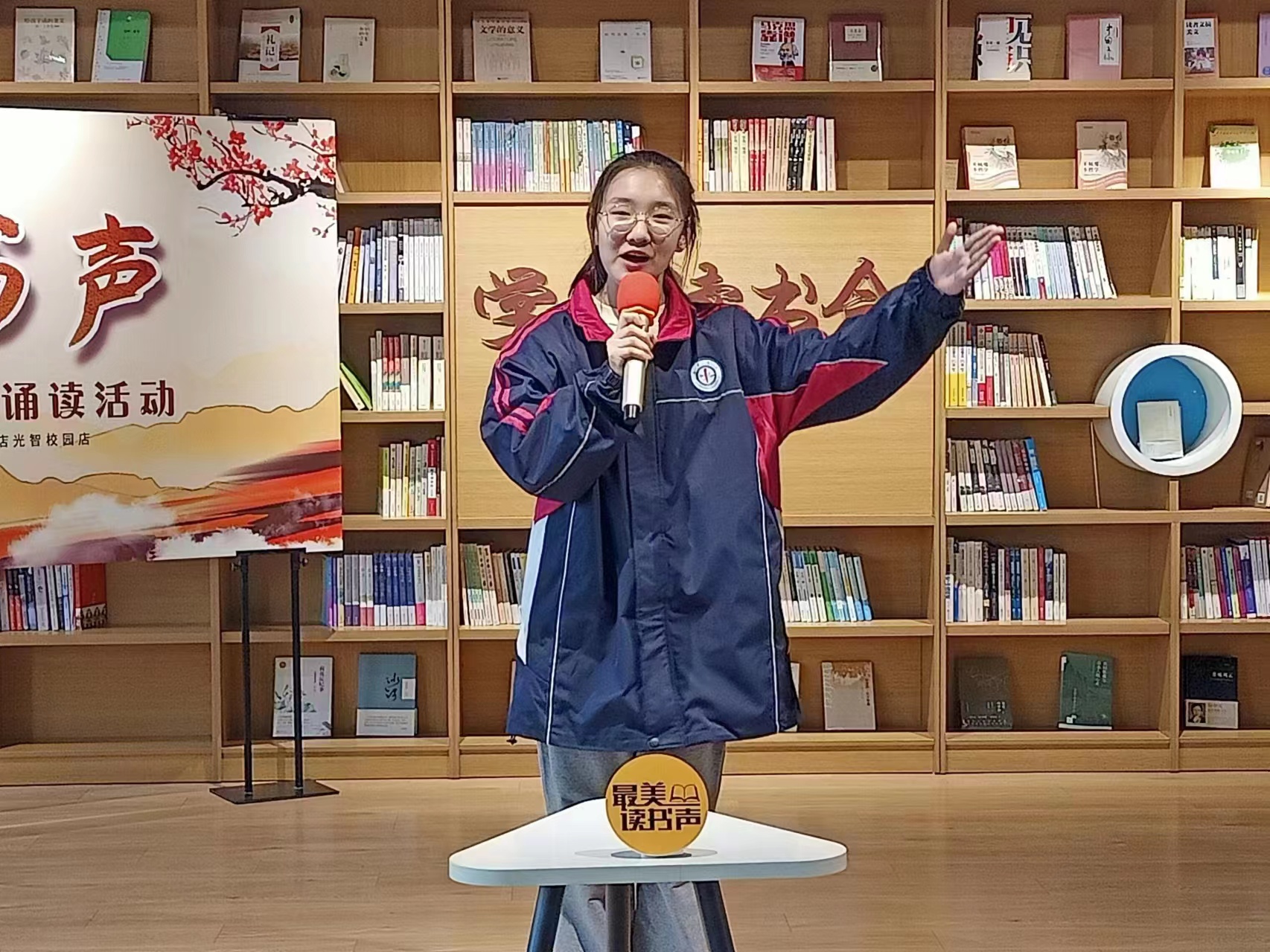 細嗅書香,風雅自來,讀書能幫助中學生打開探索未知世界的大門。為了讓中學生更加熱愛讀書,享受閱讀的快樂,近日,博愛縣新華書店聯(lián)合博愛縣光智中學雅音誦讀社團,在光智中學校園書店舉行了“光智書聲”誦讀活動,瑯瑯的誦讀聲傳遍校園。