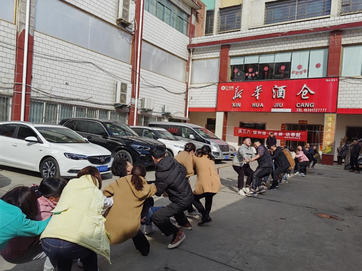為迎接“三八婦女節(jié)”來臨,活躍節(jié)日氣氛,豐富職工的文化生活,增強(qiáng)職工的凝聚力。3月1日,新密店組織開展拔河比賽、跳繩、踢毽子、跳棋、象棋、撲克等慶“三八”文體活動。