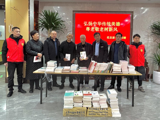 為豐富老年人的精神文化生活,倡導(dǎo)弘揚(yáng)中華傳統(tǒng)美德尊老敬老”文明風(fēng)尚,2024年1月18日范縣新華書(shū)店到盛世百福頤養(yǎng)中心開(kāi)展圖書(shū)捐贈(zèng)活動(dòng),為那里的老年人們精心挑選價(jià)值一萬(wàn)余元的百余冊(cè)圖書(shū),用實(shí)際行動(dòng)繼承和發(fā)揚(yáng)敬老、愛(ài)老的傳統(tǒng)美德。