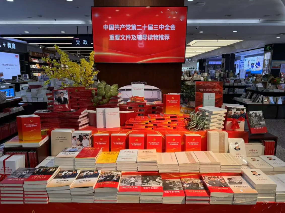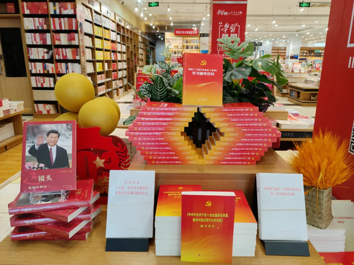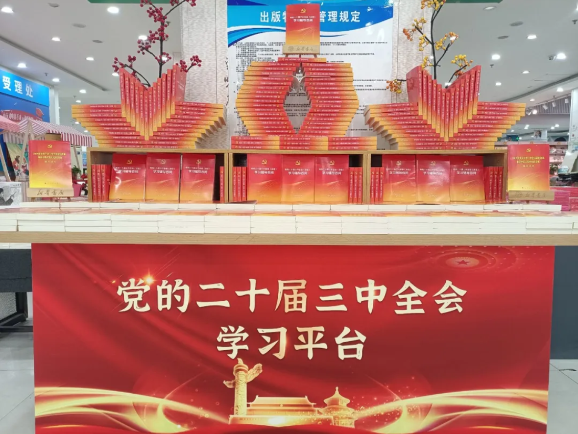 廣泛宣傳,營造學(xué)習(xí)氛圍。線上通過云書網(wǎng)、百姓文化云等平臺設(shè)立專題推薦書單,利用微信公眾號、社群、自媒體等各類媒體資源宣傳造勢;線下在各門店核心位置設(shè)立黨的二十屆三中全會精神學(xué)習(xí)讀物專題展臺,全方位加大傳播力度,全力在全省各地、多維場景營造濃厚的學(xué)習(xí)氛圍。