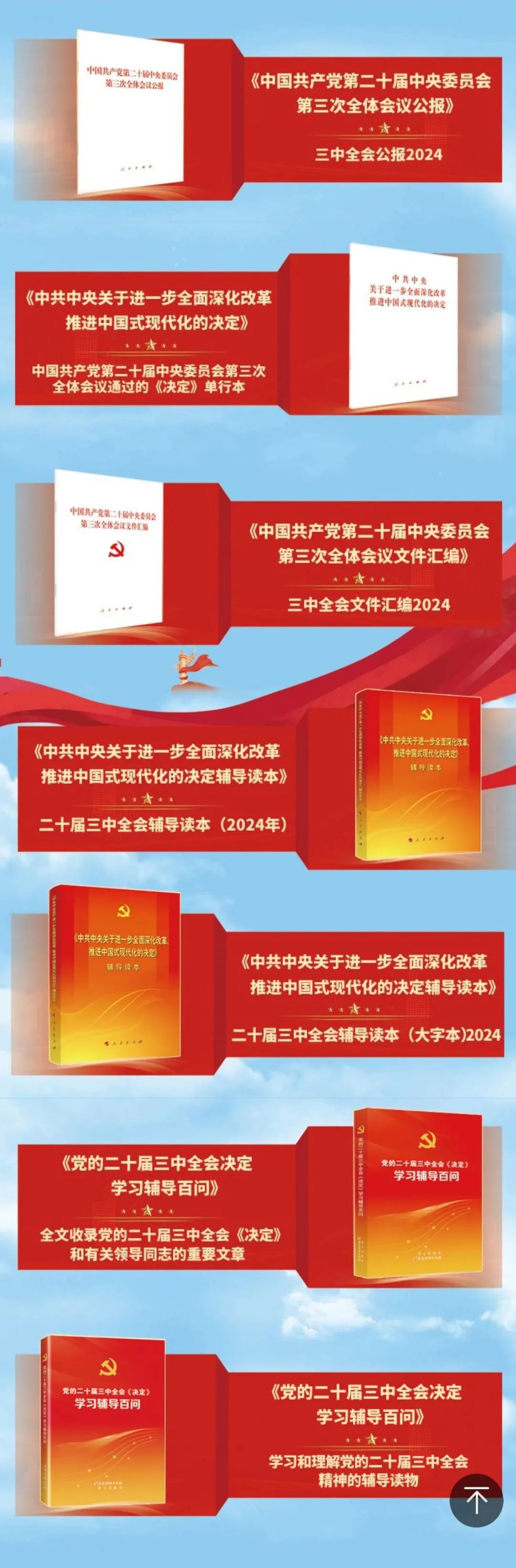 黨的二十屆三中全會文件及學(xué)習(xí)輔導(dǎo)材料現(xiàn)已全部到位,歡迎到全省各地新華書店選購。 |