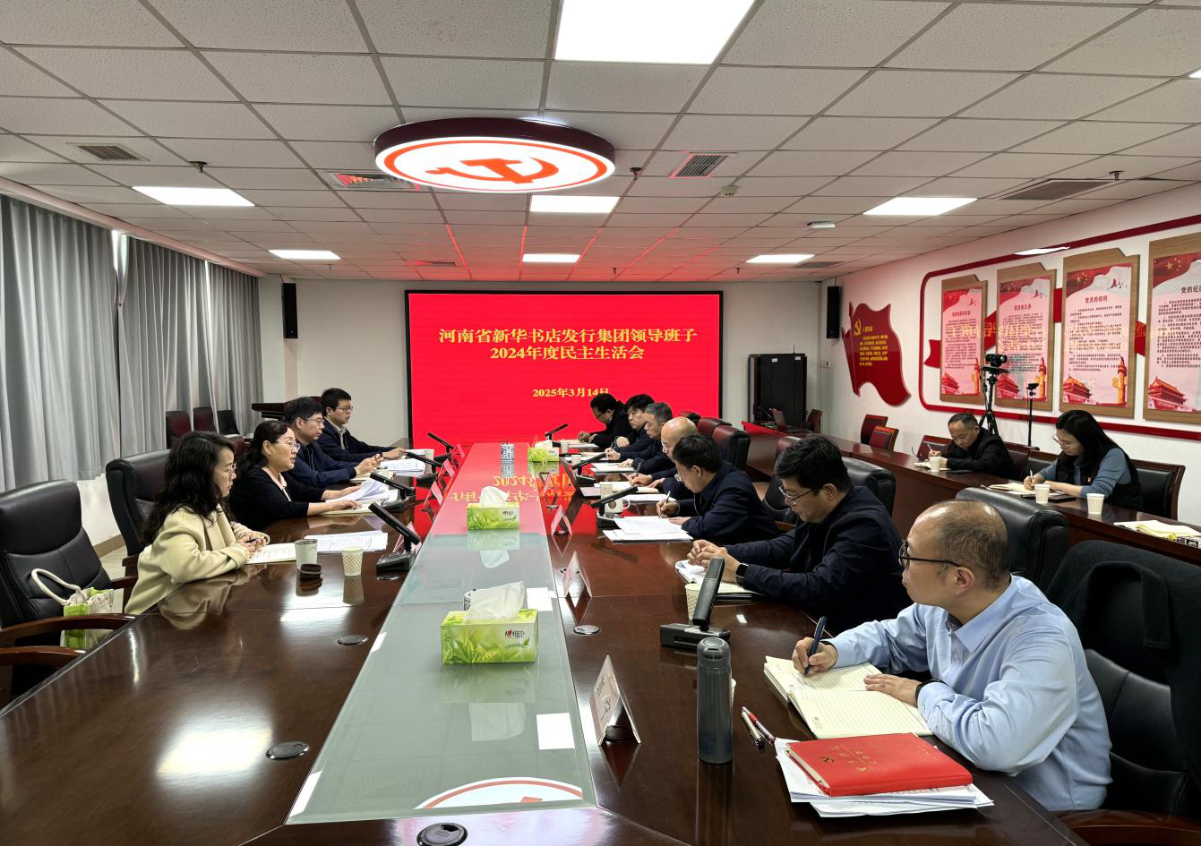 3月14日,河南省新華書店發(fā)行集團領(lǐng)導班子召開2024年度民主生活會。中原出版?zhèn)髅郊瘓F副總經(jīng)理李文平,中原出版?zhèn)髅郊瘓F直屬單位黨委副書記、黨委工作部主任賈巍,中原出版?zhèn)髅郊瘓F工會副主席、人力資本創(chuàng)新部副主任王海萍,集團公司紀委綜合室主任李智到會指導。