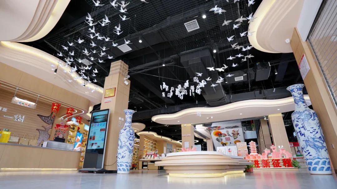 以“殷商文化”為核心的商丘市新華書店凱旋路店,營業(yè)面積達3000平方米,店內(nèi)陳列覆蓋社科、文學(xué)、藝術(shù)、科技、生活、少兒、教育等圖書4萬余種、10萬余冊,并設(shè)置了文化閱讀、多元文創(chuàng)、藝術(shù)展示、交流分享、AI自習(xí)室等多個專區(qū),是一個集文化學(xué)習(xí)、社交互動、文藝展覽于一體的多功能文化閱讀空間。在空間表達上,凱旋路店深挖地域文化元素,特別是“玄鳥生商”的甲骨文飛鳥造型環(huán)頂一樓整個大廳,藝術(shù)區(qū)的“梁園八景”古樸燈箱與文房四寶交相呼應(yīng)營造典雅文化氛圍,李白《梁園吟》的石壁雕刻讓很多前來的家長和孩子駐足欣賞、輕輕吟誦,以及“應(yīng)天文化講堂”活動專區(qū)舉辦的“朗讀者沙龍”“我是經(jīng)典傳誦人”等系列豐富閱讀活動,為讀者提供高品質(zhì)的文化體驗。此外,凱旋路店積極探索“文化+科技”的創(chuàng)新融合,在三樓和負一樓打造的數(shù)智AI自習(xí)室和科普研學(xué)實踐基地即將落地,為讀者帶來智能化、趣味性的全新體驗。