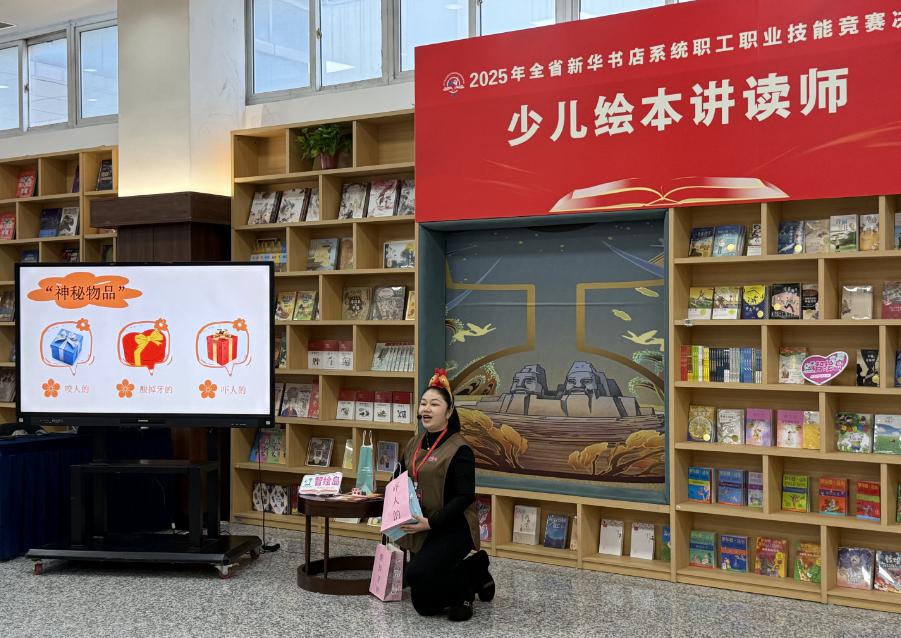 本次大賽堅持“圍繞中心、注重實戰(zhàn)、服務發(fā)展”的辦賽理念,緊扣圖書發(fā)行、閱讀服務、創(chuàng)新業(yè)務發(fā)展等核心領域,設置圖書造型及融合美陳、直播薦書、門店研學導師和少兒繪本講讀師四個競賽項目。賽事設置上,既有對傳統(tǒng)業(yè)務技能的鞏固提升,也有對新技能、新模式的探索實踐;賽事規(guī)則上,既考驗基礎功底,更注重考察創(chuàng)新能力。 決賽現(xiàn)場氛圍緊張熱烈,各項目角逐亮點紛呈。圖書造型及融合美陳項目賽場,選手們巧手翻飛,將一本本圖書打造成寓意深刻的藝術造型,讓書香與美學完美交融;直播薦書項目賽場,選手們化身專業(yè)主播,以生動講解、互動演示精準傳遞圖書核心價值,展現(xiàn)出新時代圖書發(fā)行的創(chuàng)新表達;門店研學導師項目賽場,選手們結合本土文化特色,將文學、歷史、科學等多領域知識融入研學課程,把“五育融合”具象為可感知、可參與的實踐體驗;少兒繪本講讀師項目賽場,選手們化身“故事魔法師”,以精巧靈動的設計、充滿童趣的互動,展現(xiàn)出少兒閱讀的精彩體驗。比賽間隙,選手們相互交流經驗、切磋技藝,在比拼中找差距、在交流中促提升,充分彰顯了“比學趕超”的良好氛圍。