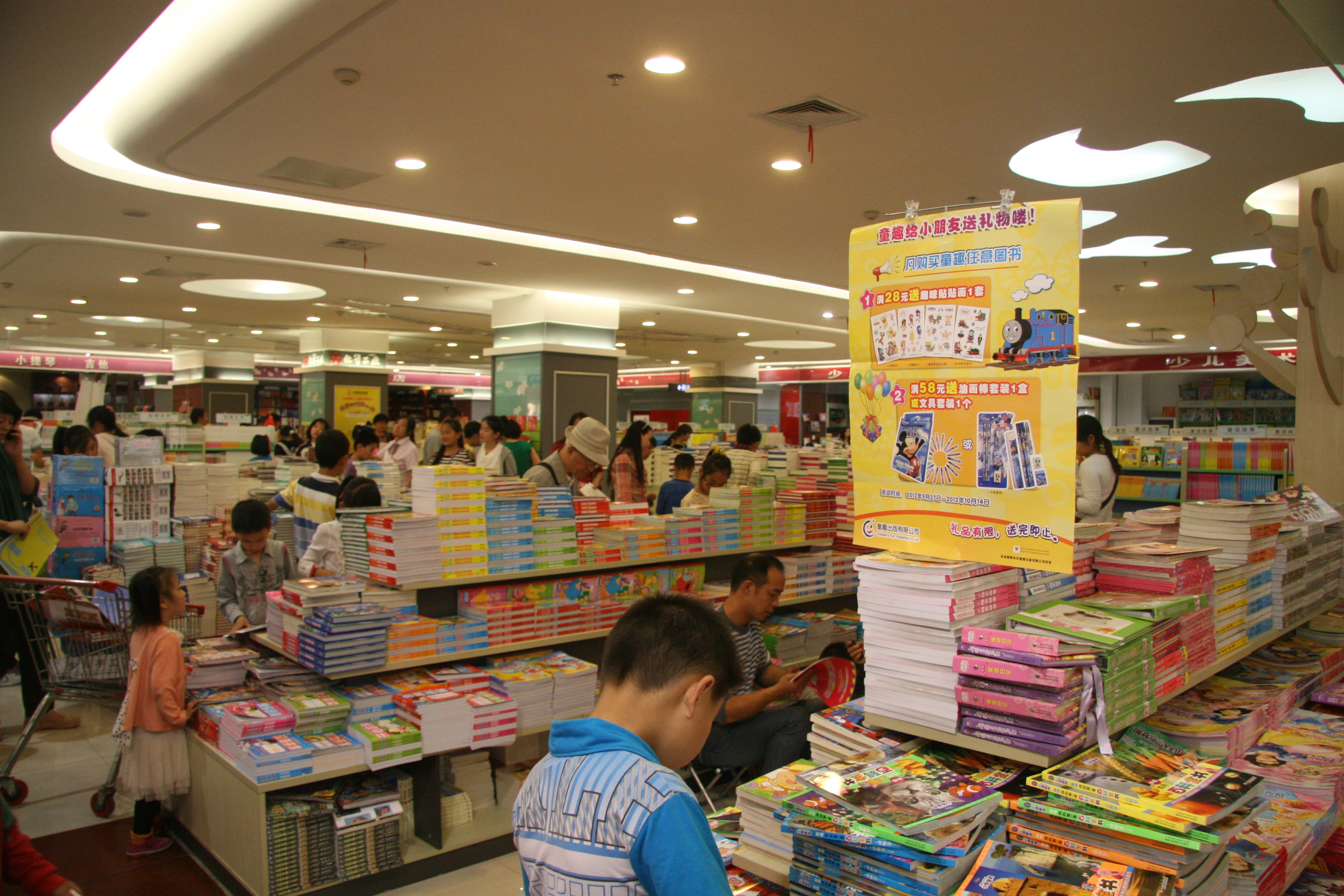 專題展臺聚攬人。節(jié)日期間,為豐富廣大讀者假期生活,鄭州購書中心賣場內(nèi)逐層設(shè)立了專題展臺:一樓開設(shè)了“讀書興國 幸運六三”的主題活動,凡年滿63歲的讀者可憑身份證獲取指定圖書一本,與祖國一起同慶63歲華誕;二樓布置了“愛我中華—國富安康和諧家”生活保健暢銷圖書展臺,倡導(dǎo)健康生活理念;三樓設(shè)立了“書海揚帆 品味人生”科普文教圖書展銷,渲染出知識強(qiáng)國的文化氛圍;四樓搭建起“書香益趣 共享閱讀”展臺,精心布置了喜羊羊、美羊羊、憤怒的小鳥等卡通造型,吸引著小讀者駐足選購圖書;五樓的“科技興國 與國同慶”主題,強(qiáng)調(diào)了科教興國的深遠(yuǎn)影響力。此外,大學(xué)路店和農(nóng)業(yè)路店也依據(jù)自身賣場特點搭設(shè)不同類別圖書展臺。各專題展臺的設(shè)立不僅為賣場營造出濃郁的節(jié)日氛圍,也吸引了眾多讀者的眼球,讀者們在展臺前紛紛拍照留念,并爭先選購圖書。