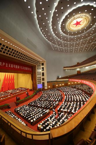 6月17日,中國共產(chǎn)主義青年團第十七次全國代表大會在北京人民大會堂開幕。
