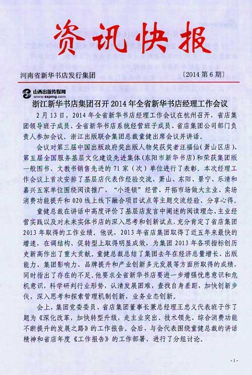 來源:河南省新華書店發(fā)行集團有限公司  作者:河南省新華書店發(fā)行集團有限公司  發(fā)布時間:2014/2/27 9:09:51  閱讀次數(shù):11074