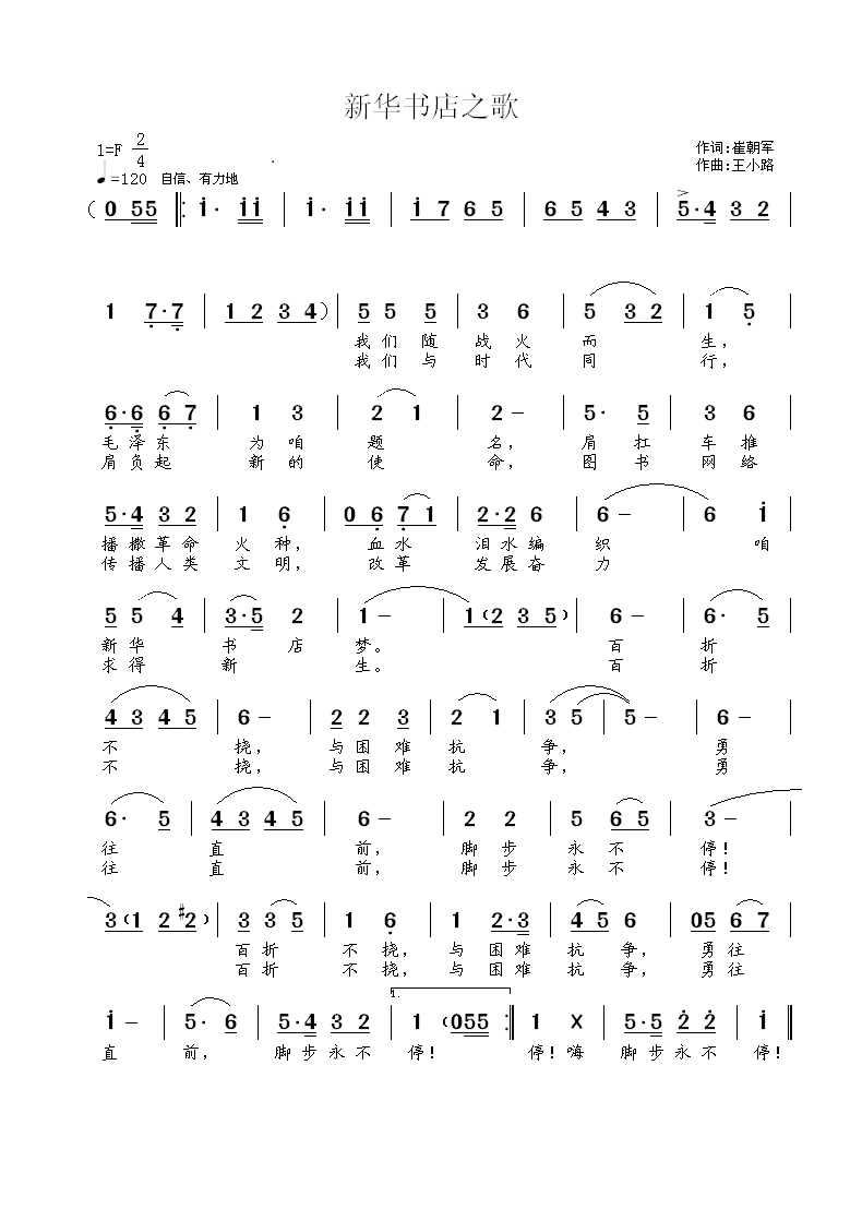 這首《新華書(shū)店之歌》由登封市店經(jīng)理崔朝軍填詞,河南省歌舞演藝集團(tuán)駐團(tuán)首席作曲家王小路譜曲,該歌一經(jīng)面世,立即受到廣大新華書(shū)店干部員工的喜愛(ài)傳唱。