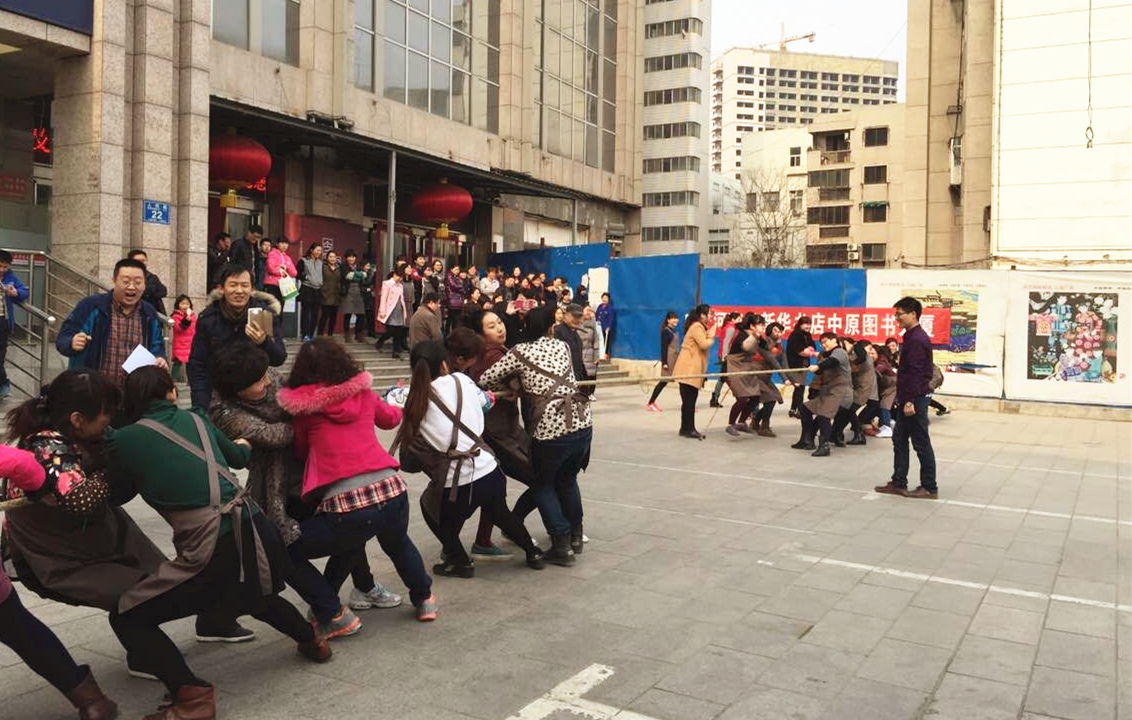 慶祝“三·八”婦女節(jié),豐富職工的精神文化生活,增強(qiáng)凝聚力和團(tuán)體合作精神,中原圖書大廈201538下午,舉辦了女員工拔河比賽。