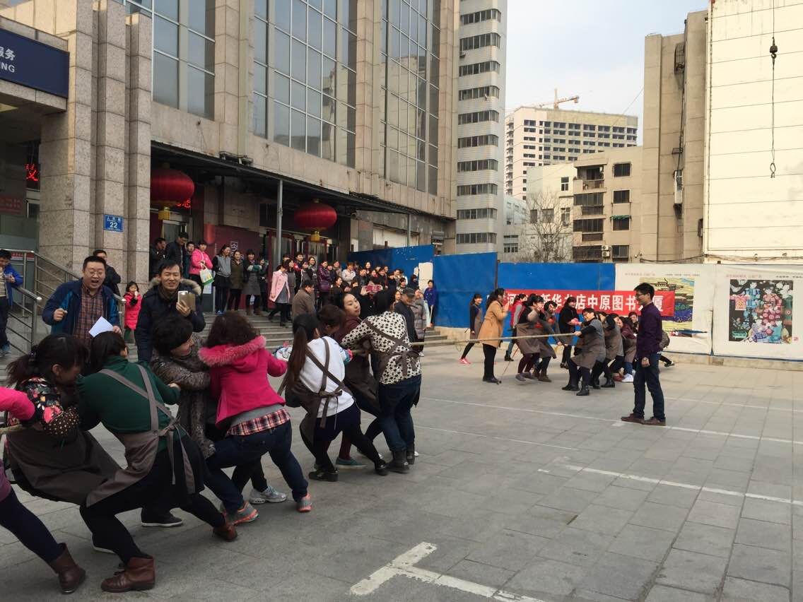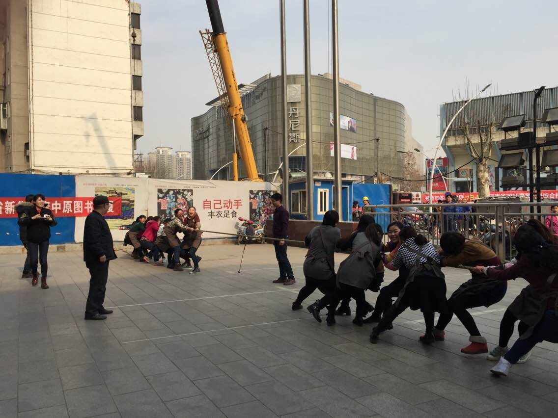 為慶!叭ぐ恕眿D女節(jié),豐富職工的精神文化生活,增強凝聚力和團體合作精神,中原圖書大廈工會分會于2015年3月8日下午3點,舉辦了女員工拔河比賽。