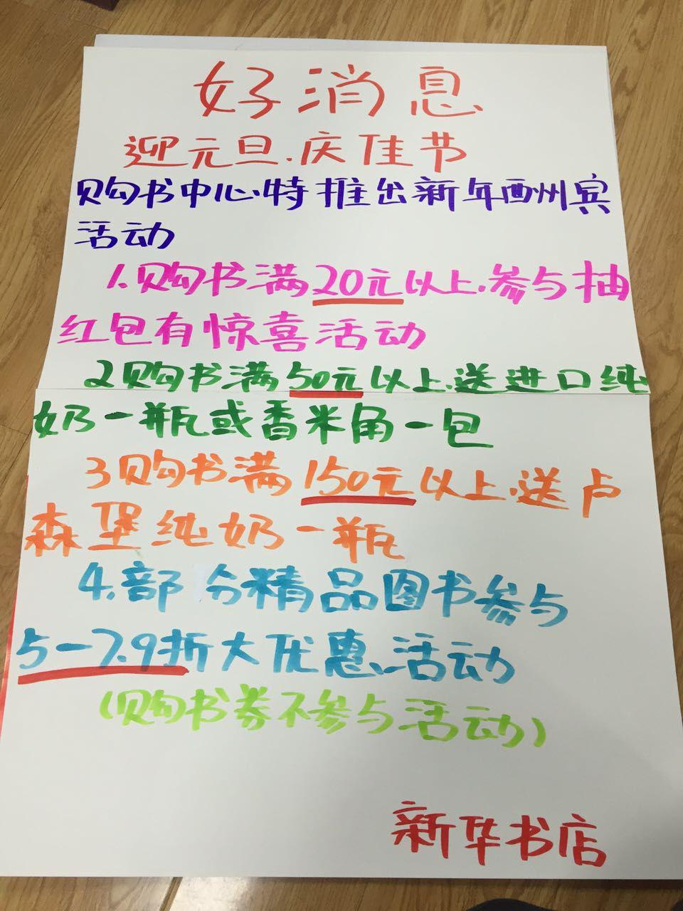 喜迎元旦,歡慶佳節(jié)。新密市店在2016年元旦來(lái)臨之際,為回饋廣大讀者,積極推出購(gòu)書抽獎(jiǎng)、購(gòu)書贈(zèng)禮、打折優(yōu)惠等營(yíng)銷活動(dòng),另外還精心布置賣場(chǎng),營(yíng)造節(jié)日氛圍,抓住消費(fèi)契機(jī),拉動(dòng)銷售增長(zhǎng)。