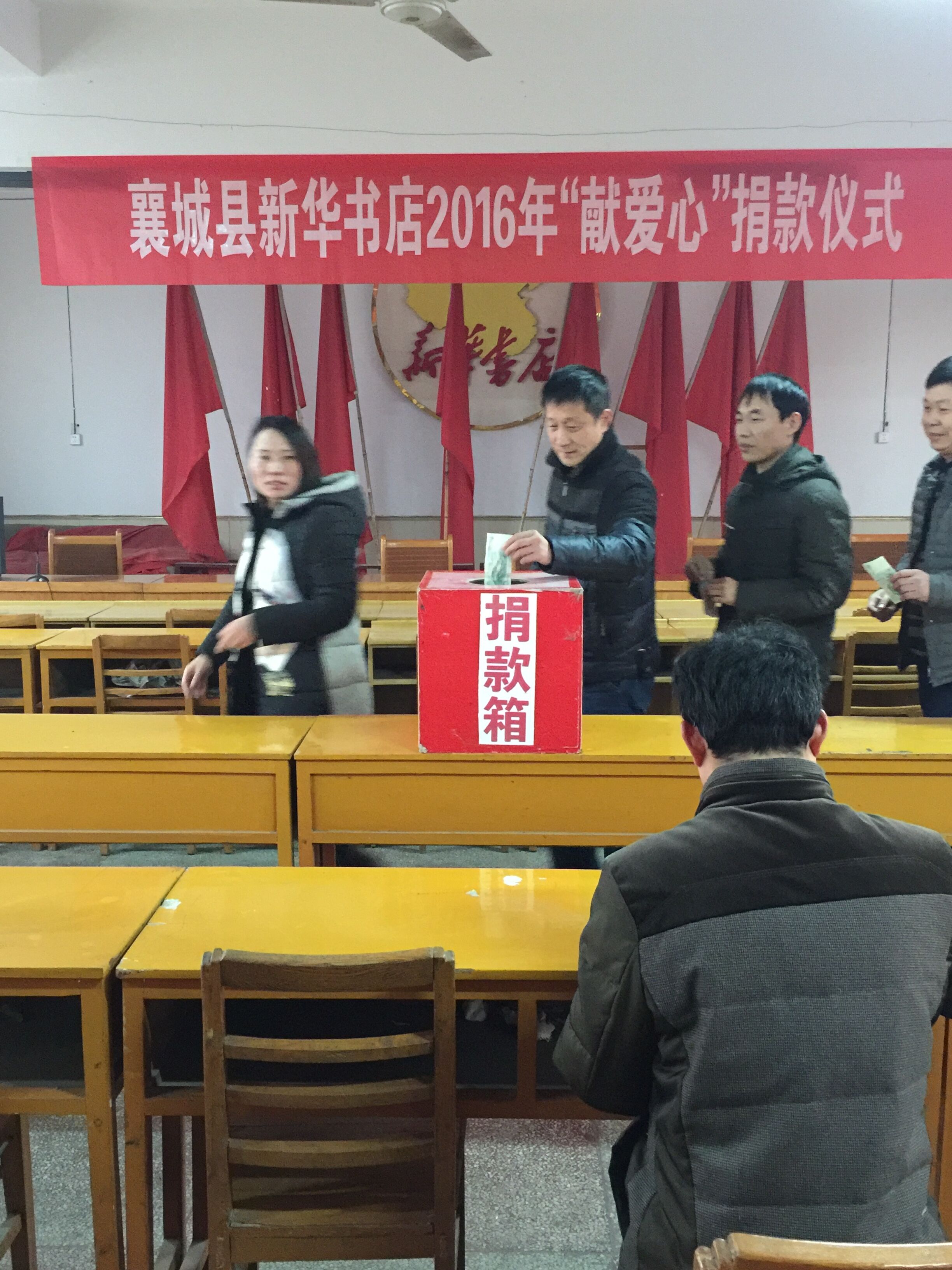 新春佳節(jié)即將來臨,為了能讓城鄉(xiāng)困難群眾過一個(gè)歡樂、祥和的節(jié)日,為他們送去寒冬里的溫暖,2016年1月4日,襄城縣店組織全體職工開展了“獻(xiàn)愛心”捐款活動(dòng)。