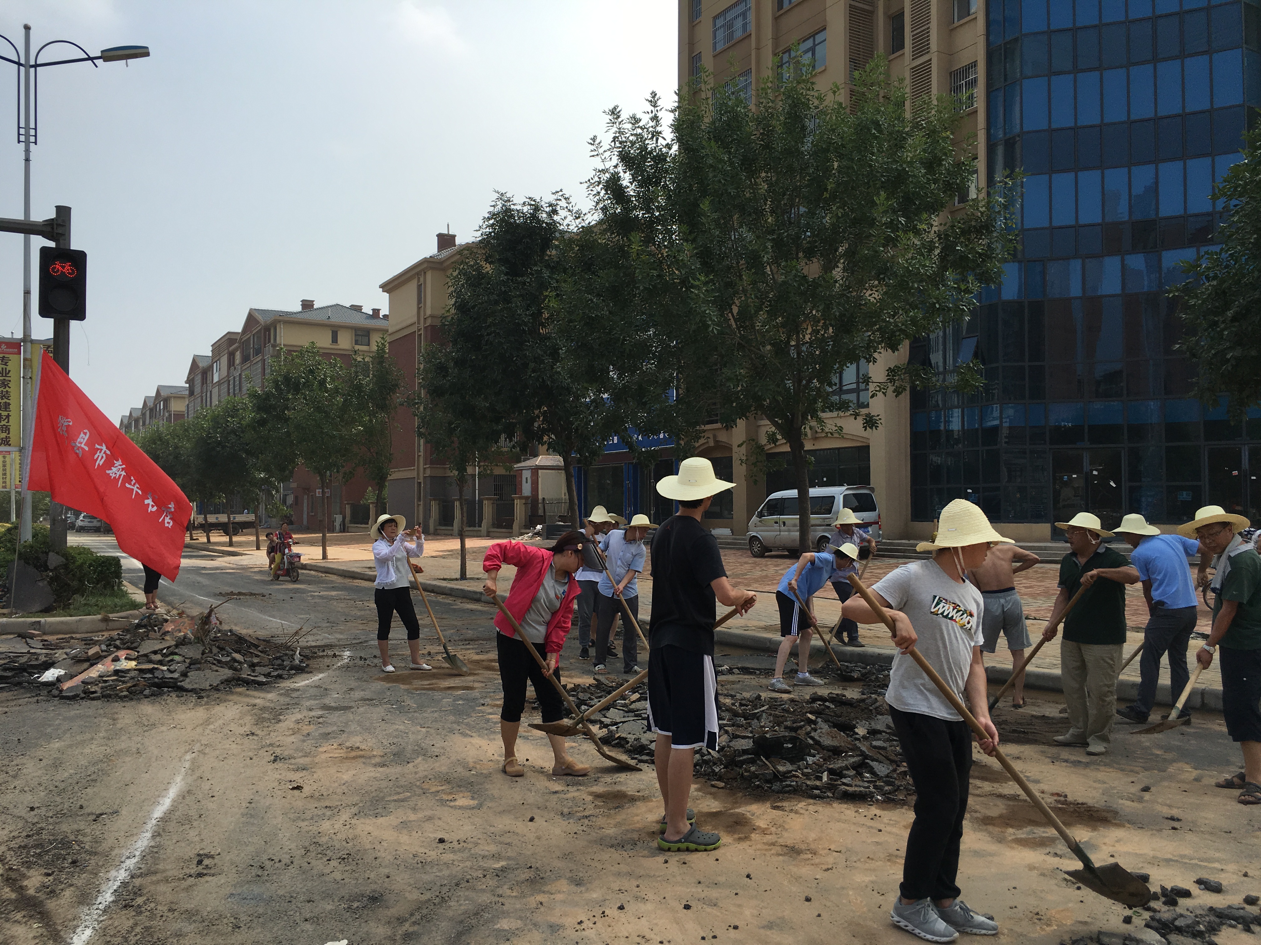 7月9日,輝縣市遭遇了百年不遇的雨災(zāi),損失慘重。7月10日下午,輝縣市新華書店近30名黨員干部、職工,積極響應(yīng)市委市政府的號(hào)召,冒著酷暑炎熱,在九山路南段清理洪水過后留下來的淤泥和垃圾。參加勞動(dòng)的黨員干部、職工用鐵鍬鏟,用掃帚掃,不怕臟、不怕累,清淤泥、撿垃圾,盡快把淤泥清掃干凈,幫助群眾恢復(fù)生產(chǎn)生活,用行動(dòng)為自救家園努力著。
