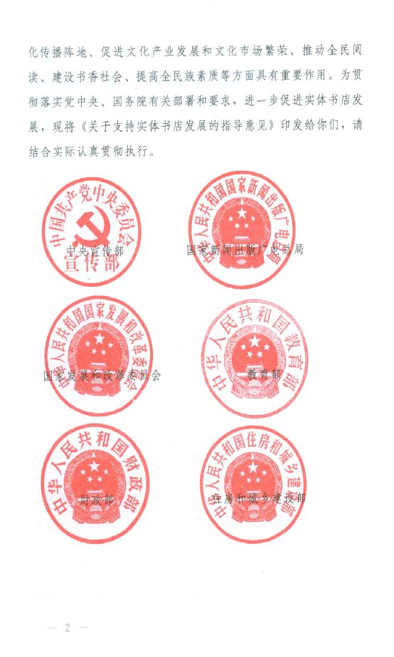 關(guān)于印發(fā)《關(guān)于支持實(shí)體書店發(fā)展的指導(dǎo)意見》的通知